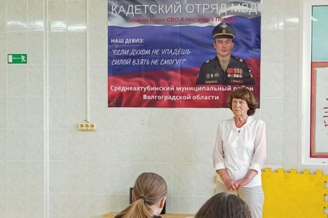 В ходе урока мужества с кадетами спортивного отряда МВД по Среднеахтубинскому району Волгоградской области им. Героя России А.А. Попова Вера Александровна рассказала о стойкости и героизме сотрудников милиции Средеахтубинского района во время Сталинградской битвы, на Северном Кавказе, а также о подвигах сотрудников органов внутренних дел при проведении СВО.