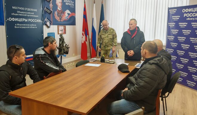 27 марта председатель президиума местного отделения «ОФИЦЕРОВ РОССИИ» г. Жирновска Волгоградской области подполковник в отставке Василий Малолетенко и руководитель исполкома местного отделения майор в отставке Сергей Гладышев провели мероприятие в честь 215-й годовщины войск правопорядка и 10-летия войск национальной гвардии РФ, в процессе которого поздравили ветеранов внутренних войск МВД и Росгвардии, участвующих в боевых действиях, с юбилейными датами.